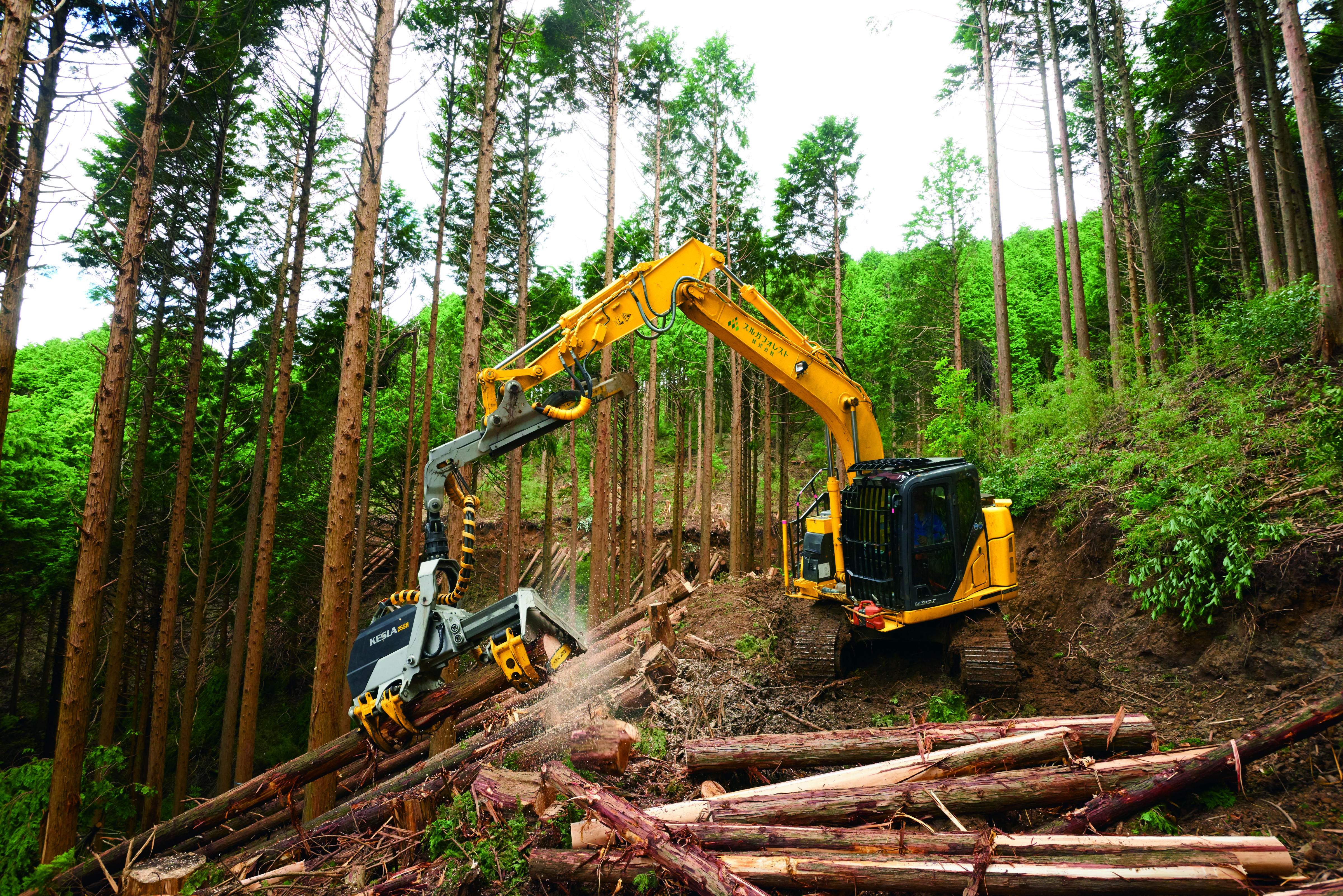 「昨年の1月にハーベスタを導入したところなので、1年たってようやく作業班2班9名の作業員全員が操作出来るようになり慣れてきたところです。今年になってからはデータを収集しようと設定をし直したりして材積の管理をし始めましたが、内蔵された機能はまだまだ使いきれていない状況です。導入のきっかけは、この数年松枯れの影響で冬場に松の皆伐の仕事が増えてきました。赤松の枝払いにはストローク式が良いと聞いていたので、KESLA なら住友さんというセットのイメージがあったのでお願いしました。素材生産量は、一昨年は4,000㎥でしたが昨年は7,000㎥と導入の成果はあがっています。」
